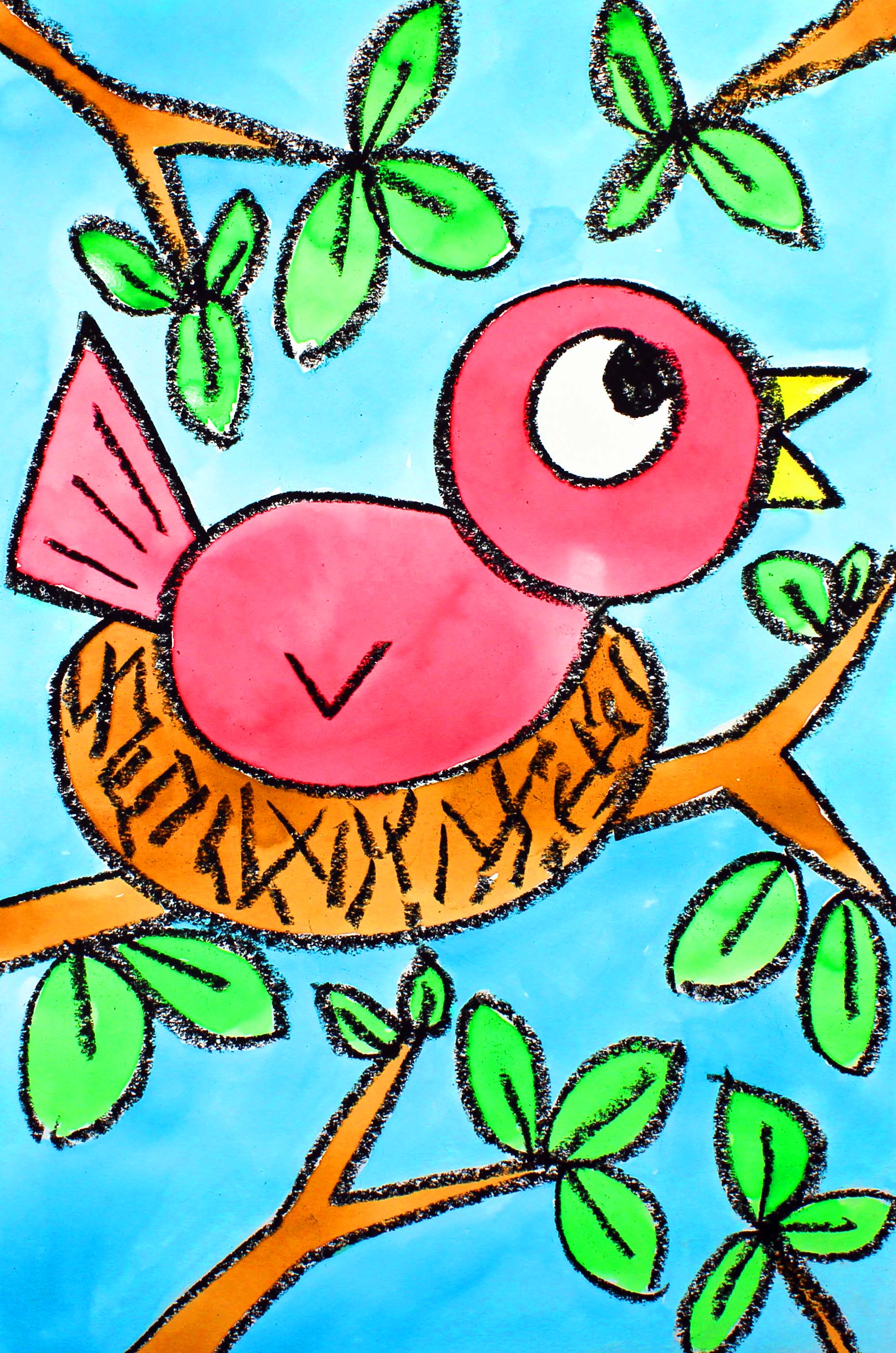 Art Project for Kids: How to Draw and Paint a Baby Bird in a Nest