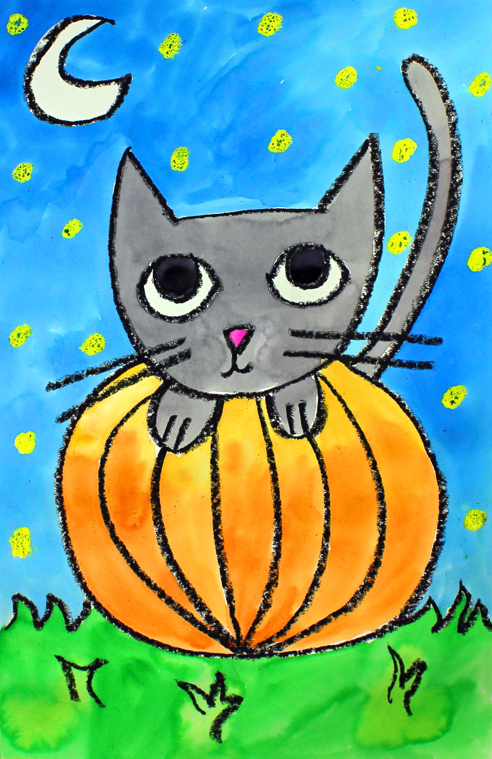 Art Project for Kids: How to Draw and Paint a Cat and a Pumpkin