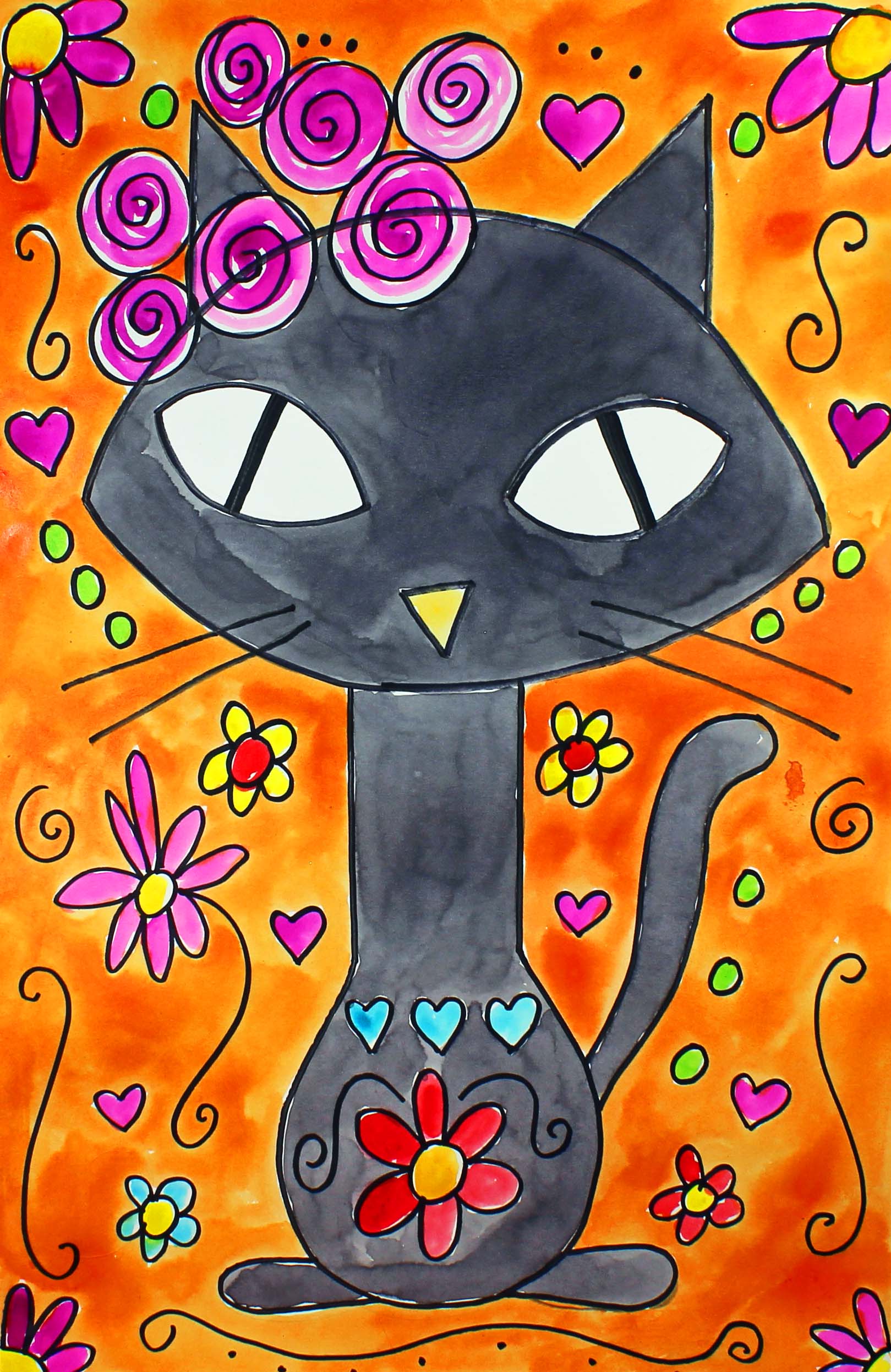 Art Project for Kids: How to Draw and Paint a Folk Art Frida Cat